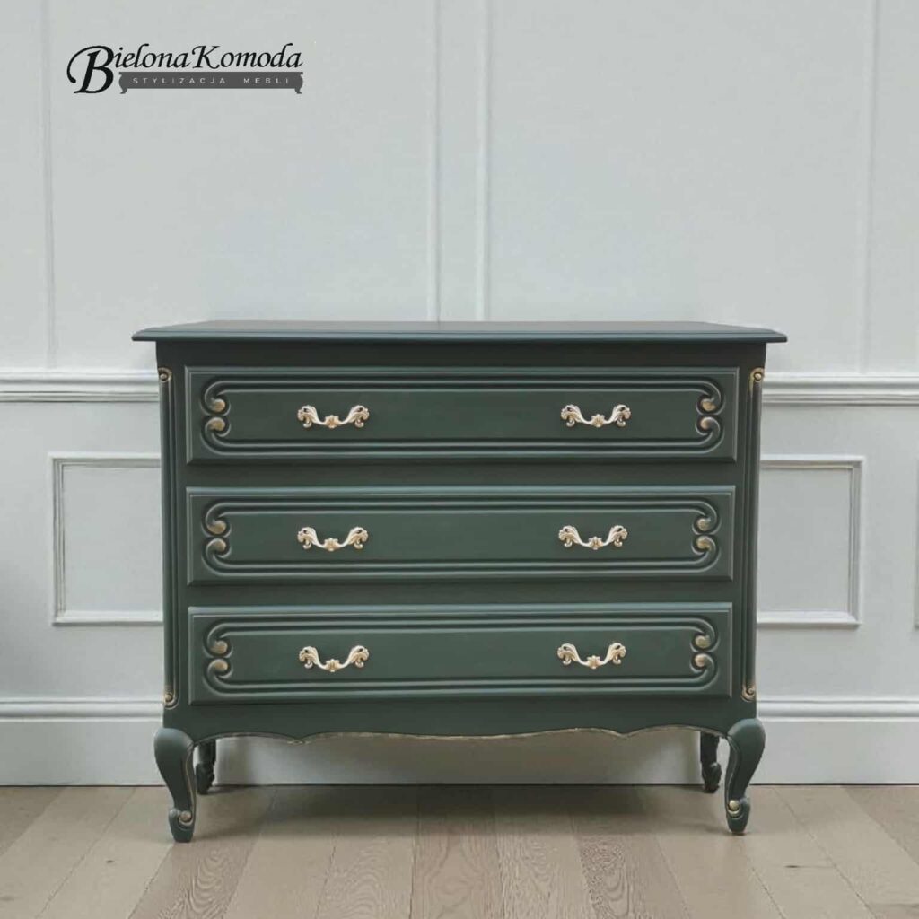 Angielska komoda dostępna od ręki. Na frontach zachowany został oryginalny szlachetny fornir, odświeżony i zabezpieczony w pracowni. Wewnątrz szuflad elegancka tapeta.Uchwyty piękne szczotkowane jasne złoto. Komoda sprawdzi się:- w salonie pod TV,- w przedpokoju, robiąc wrażenie "wow" na gościach lub- w buduarowej sypialni Wymiary: Szerokość 145 cm, Głębokość 50 cm, Wysokość 86 cm Możliwość transportu […]